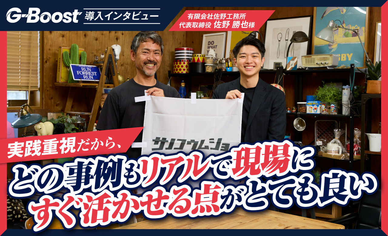 今回は、有限会社佐野工務所 代表取締役の佐野さんに、実践型コミュニティ「G-Boost」での変化を伺いました。